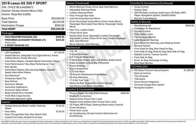 2018 Lexus GS 350 Recent Arrival! AWD 6-Speed Automatic with Sequential Shift 4D Sedan