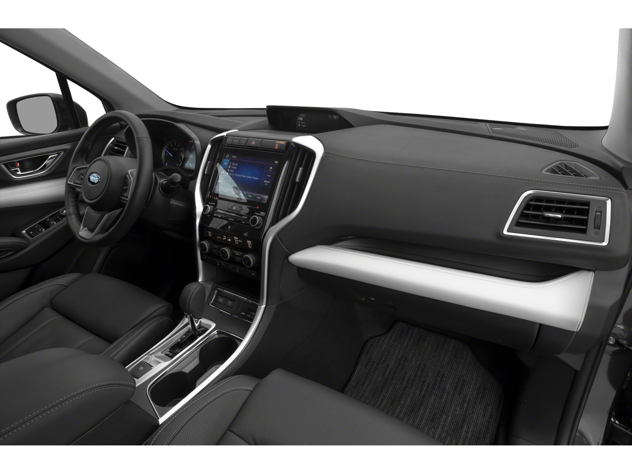 With Some Available Options Like Popular Package #2 (All-Weather Floor Liners, Auto-Dimming Exterior Mirror w/Approach Light, Cargo Tray, Rear Bumper Cover, and Splash Guards), Standard Model, 14 Speakers, 20 Alloy Wheels, 3rd row seats: bench, 4-Wheel Disc Brakes, ABS brakes, Air Conditioning, Alloy wheels, AM/FM radio: SiriusXM, Auto High-beam Headlights, Auto-dimming Rear-View mirror, Automatic temperature control, Axle Ratio: 4.44, Brake assist, Bumpers: body-color, CD player, Compass, Delay-off headlights, Driver door bin, Driver vanity mirror, Dual front impact airbags, Dual front side impact airbags, Electronic Stability Control, Emergency communication system: STARLINK Safety and Security, Exterior Parking Camera Rear, Four wheel independent suspension, Front anti-roll bar, Front Bucket Seats, Front Center Armrest, Front dual zone A/C, Front fog lights, Front reading lights, Fully automatic headlights, Garage door transmitter: HomeLink, harman/kardon® Speakers, Heated & Ventilated Front Bucket Seats, Heated door mirrors, Heated front seats, Heated rear seats, Heated steering wheel, Illuminated entry, Knee airbag, Low tire pressure warning, Memory seat, Navigation System, Occupant sensing airbag, Outside temperature display, Overhead airbag, Overhead console, Panic alarm, Passenger door bin, Passenger vanity mirror, Perforated Leather-Trimmed Upholstery, Power door mirrors, Power driver seat, Power Liftgate, Power moonroof, Power passenger seat, Power steering, Power windows, Radio data system, Radio: Subaru STARLINK 8.0 Multimedia Nav System, Rain sensing wipers, Rear air conditioning, Rear anti-roll bar, Rear reading lights, Rear window defroster, Rear window wiper, Remote keyless entry, Roof rack: rails only, Security system, Speed control, Split folding rear seat, Spoiler, STARLINK/Apple CarPlay/Android Auto, Steering wheel mounted audio controls, Tachometer, Telescoping steering wheel, Tilt steering wheel, Traction control, Trip computer, Turn signal indicator mirrors, Variably intermittent wipers, and Ventilated front seats.