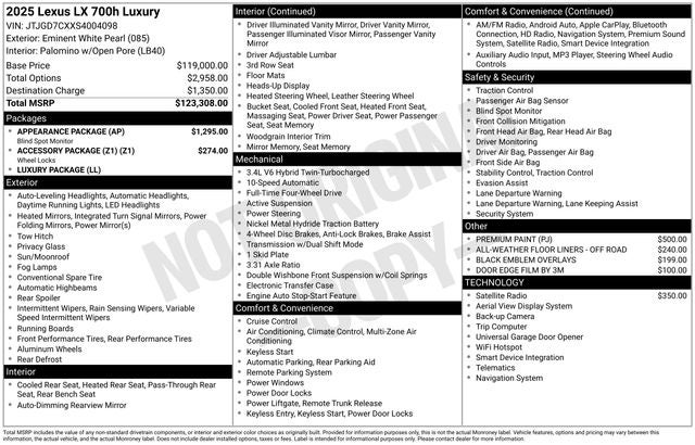 Experience the unrivaled craftsmanship, advanced technology, and exceptional performance of the 2025 Lexus LX 700h Luxury. Visit our showroom today and let us demonstrate why this remarkable vehicle is the perfect choice for your next luxury SUV.